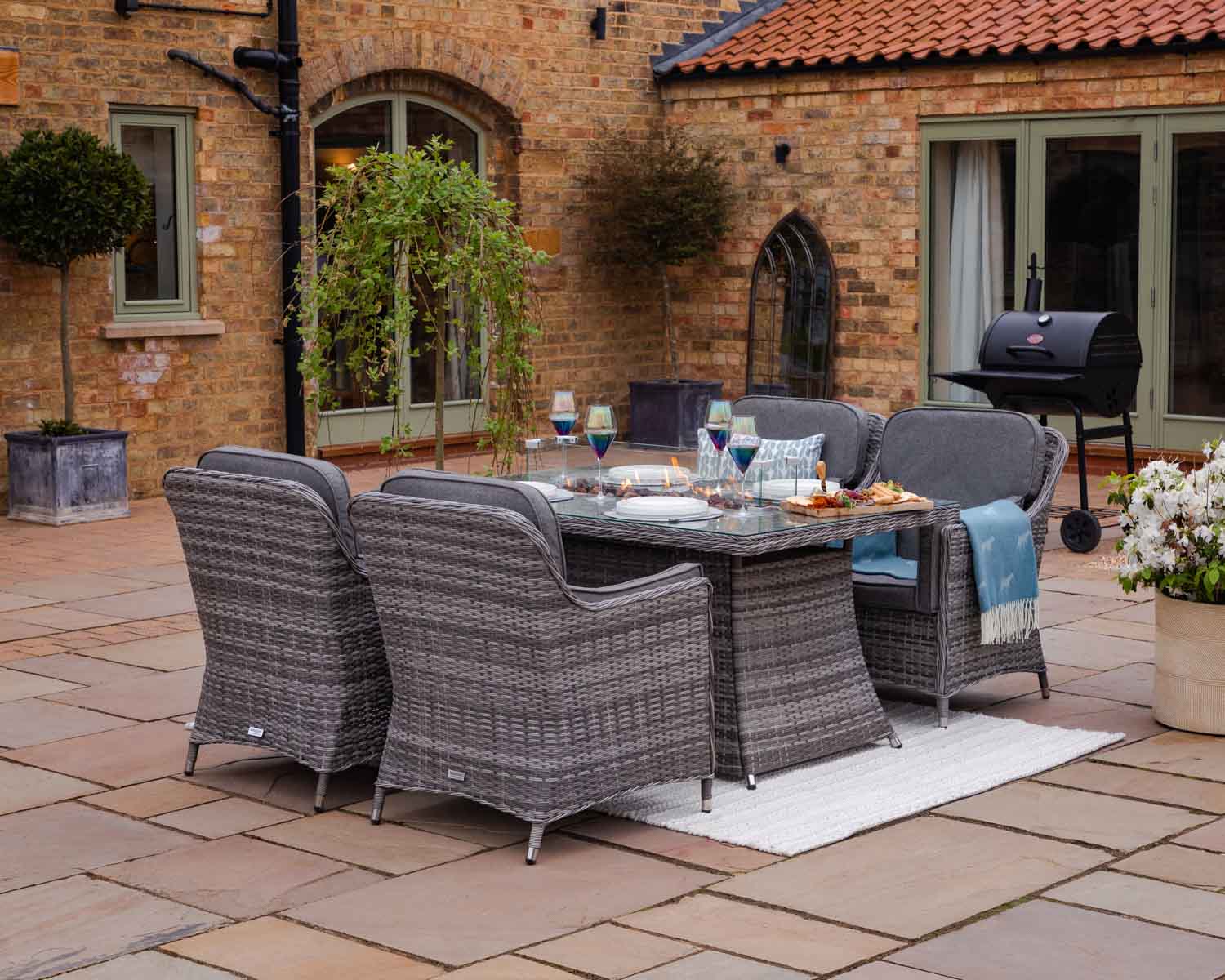 4 Seat Rattan Garden Dining Set With Rectangular Table in Grey With Fire Pit – Lyon – Rattan Direct