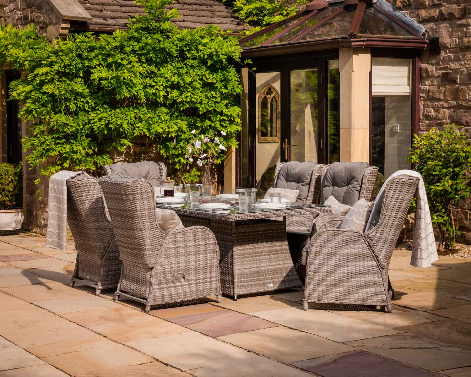 Be the first to review “6 Reclining Rattan Garden Chairs & Large Rectangular Fire Pit Dining Table in Grey – Fiji – Rattan Direct”