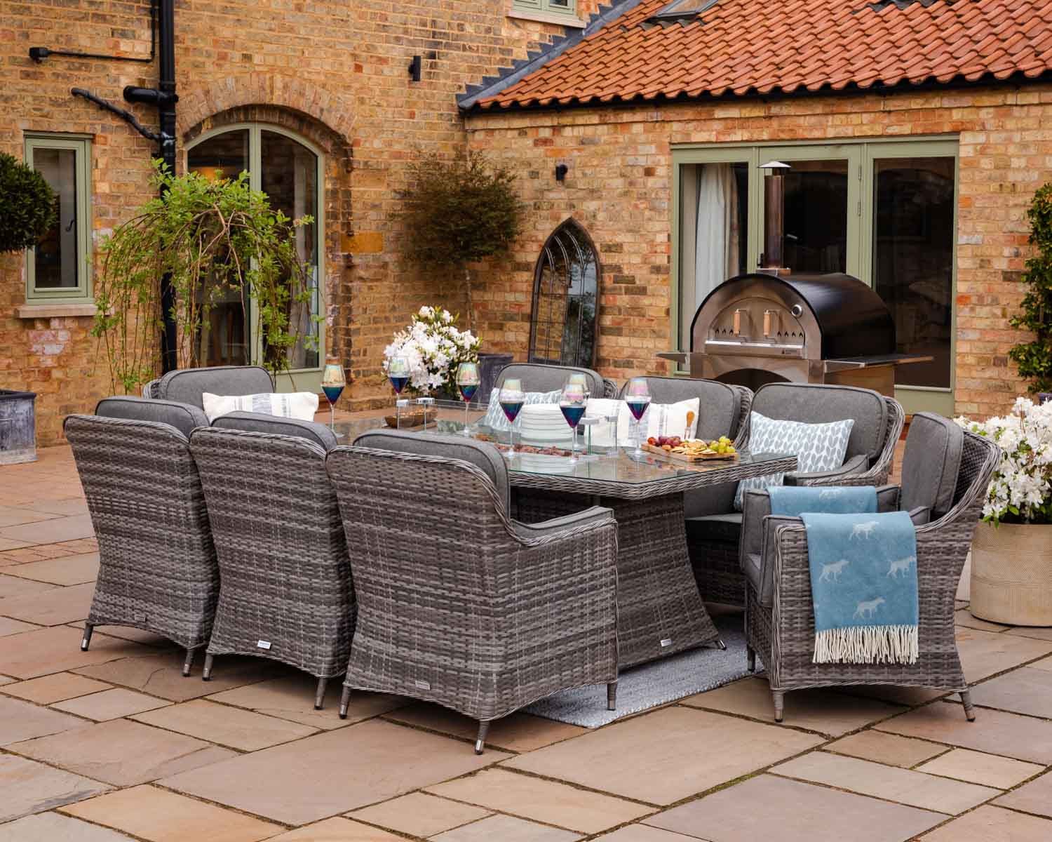 8 Seat Rattan Garden Dining Set With Rectangular Table in Grey With Fire Pit – Lyon – Rattan Direct