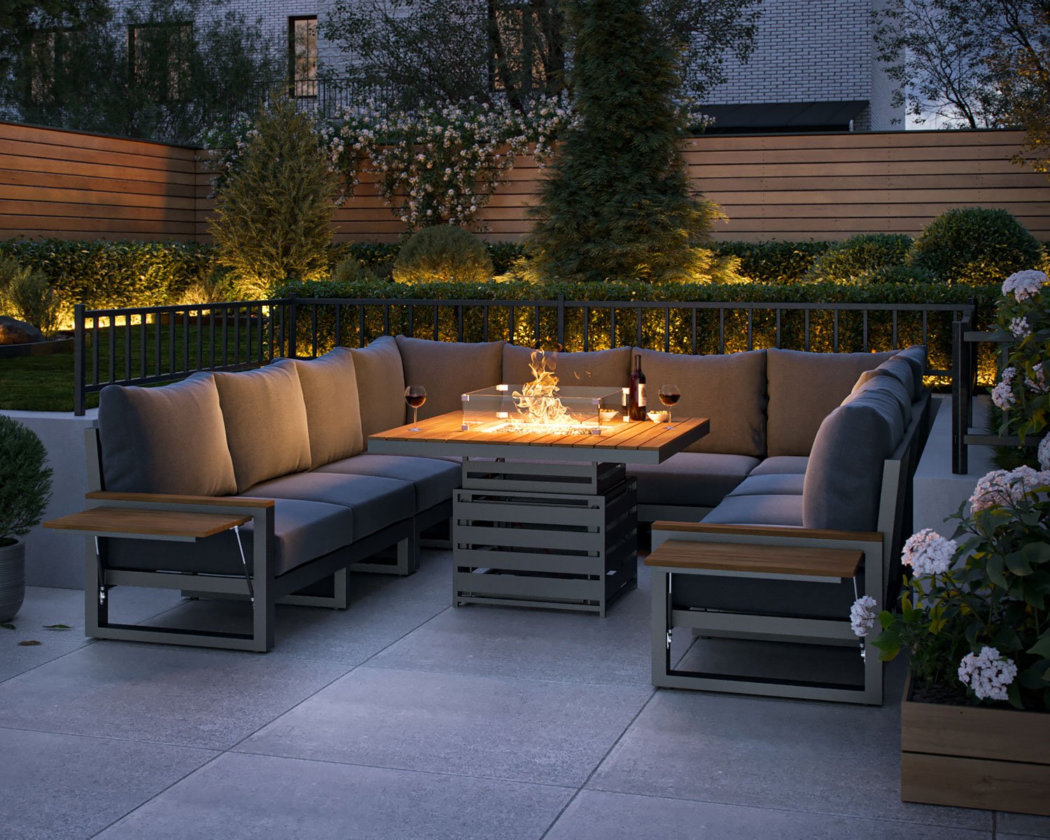 Aluminium & Teak U-Shaped Garden Sofa with Adjustable Fire Pit Table -Sequoyah – Rattan Direct