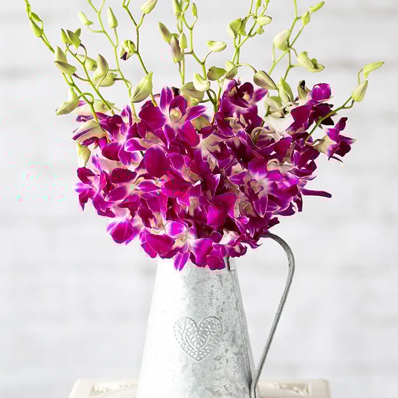 An exotic bouquet of long-stemmed Dendrobium Orchids in a vibrant fuchsia colour.Grown in Thailand on beds of coconut shells, we choose a strong, long-lasting variety. This delicate flower will enhance any occasion with its stunning oriental beauty.