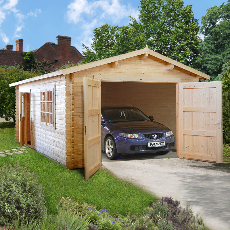Palmako Roger 3.6m x 5.5m Log Cabin Single Garage (44mm) – Double Doors