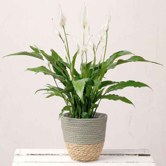 Surprise someone special with this delicate Peace Lily plant, delivered in a stylish two-tone pot. A Peace Lily plant is also perfect for keeping in your bedroom, they have the power to filter harmful toxins and boost the humidity of a room by up to 5%! These green plants help to purify the air around us and can even help us sleep! An air-purifying plant is a great gift for any occasion whether it be to welcome someone into a 'new home' or to send a 'get well soon' wish. Please note – This plant is considered toxic. Care should be taken to ensure it is not consumed by pets or children. This plant measures approximately (including pot) : H50cm x W15cm.