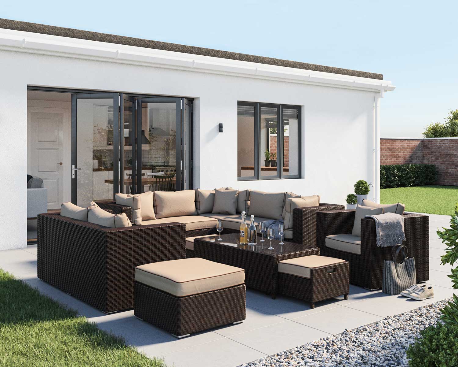 Rattan Garden Corner Sofa Set in Brown with Cream Cushions – Geneva – Rattan Direct