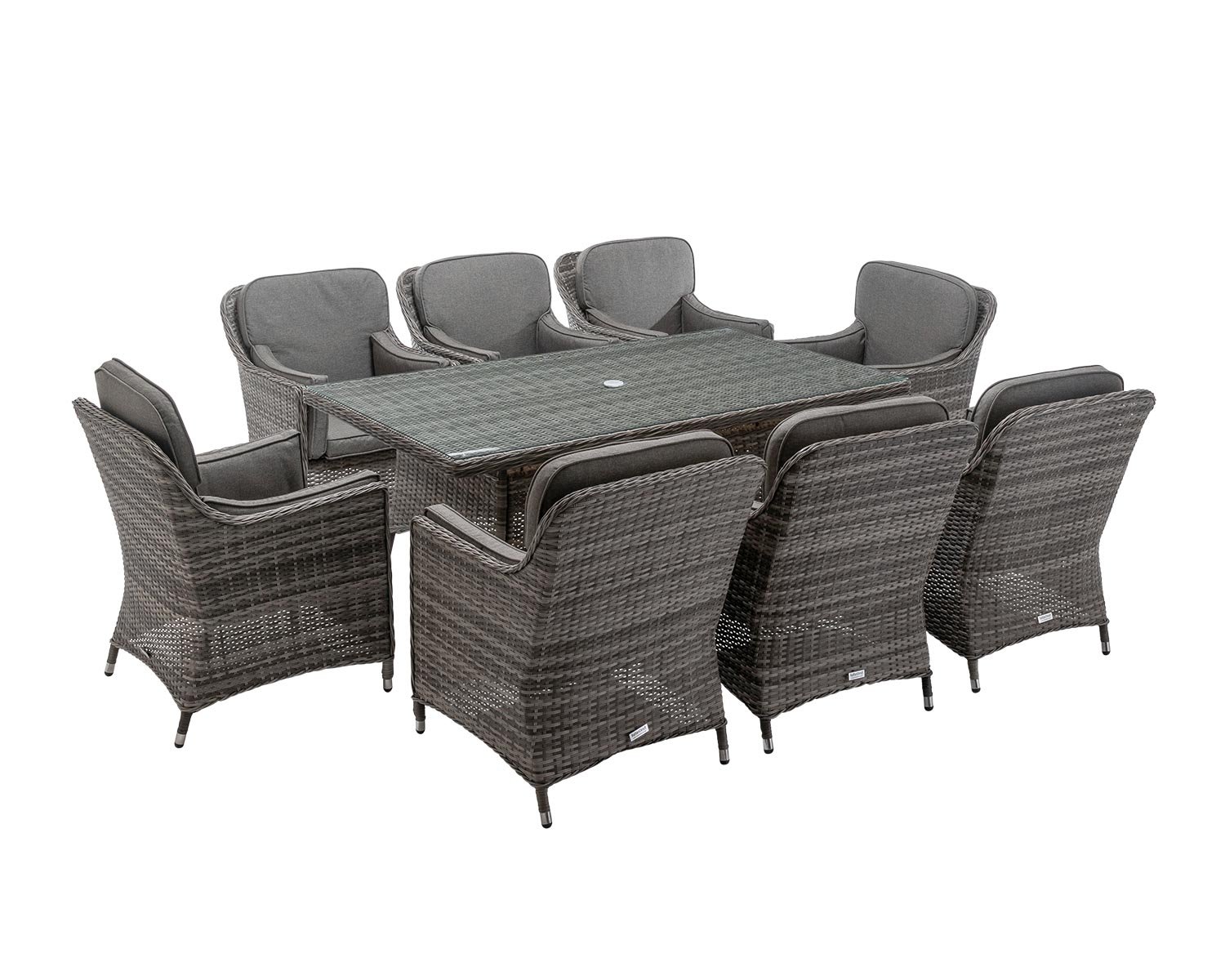Rattan Garden Set with 8 Dining Chairs & Large Rectangular Table in Grey – Lyon – Rattan Direct