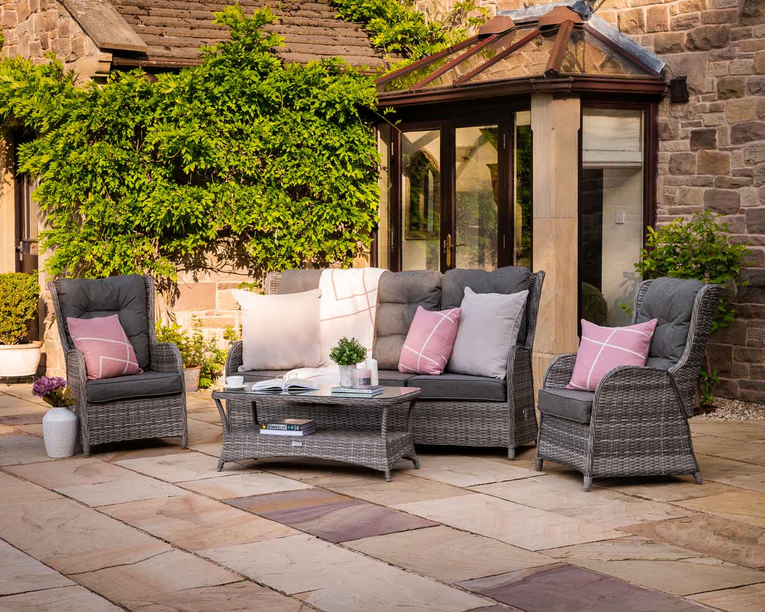 Reclining Rattan Garden 3 Seat Sofa & Armchair Set in Grey – Fiji – Rattan Direct