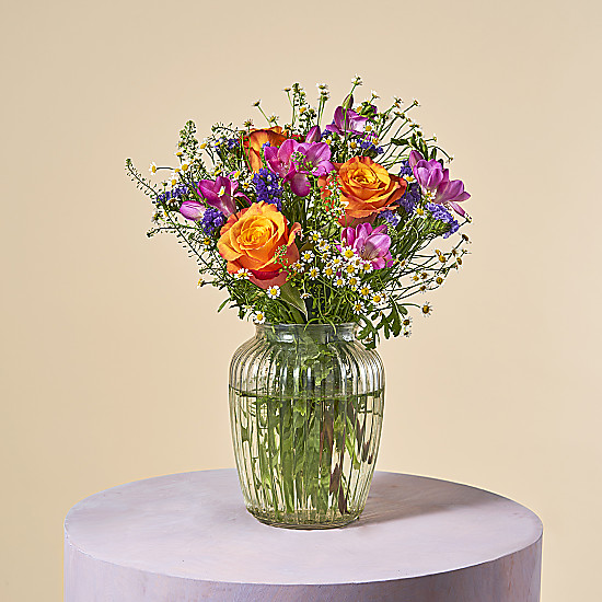 This beautiful bouquet features a variety of fresh roses, Limonium and freesia. The soft scent of the freesia will fill your home with a sweet aroma of love. Send some love today with the Scented Love Bouquet! Our Letterbox blooms may look a little tired after their journey, please give them up to 48 hours to perk up in a vase to look their best.