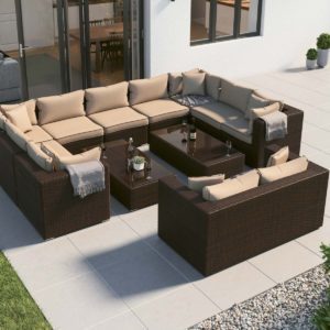 12 Piece Rattan Garden Corner Sofa Set in Brown – Geneva – Rattan Direct