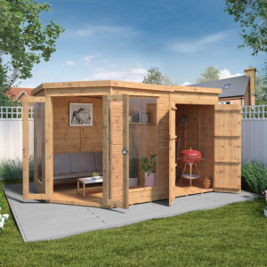 11′ x 7′ Mercia Corner Shiplap Wooden Garden Summerhouse with Side Shed (3.2m x 2.1m)